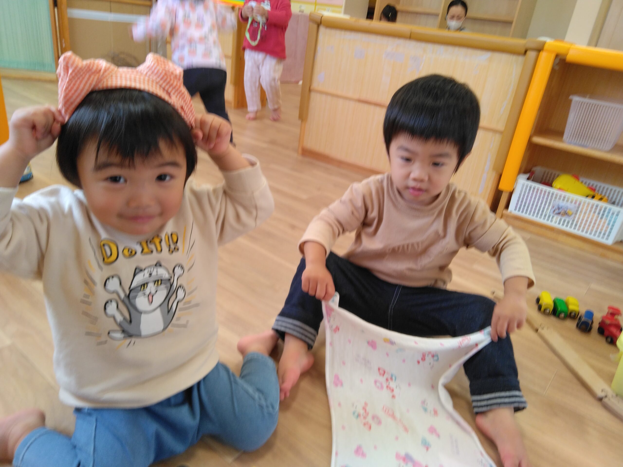 ♪ハンカチ♪ハンカチ♪ぱ~たぱた♪な~にがな~にができるかな♪