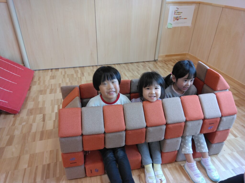 見て見て!!3人で座れるイスできたよ~!