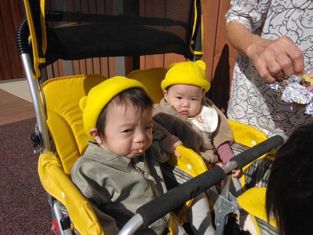 散歩カーに乗って食べたよ🍠