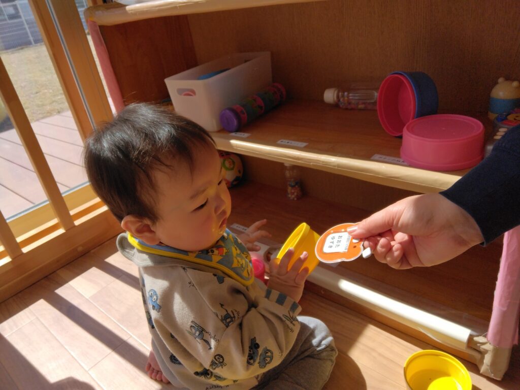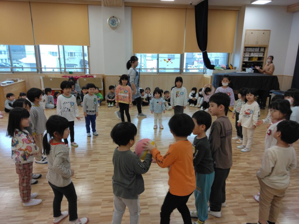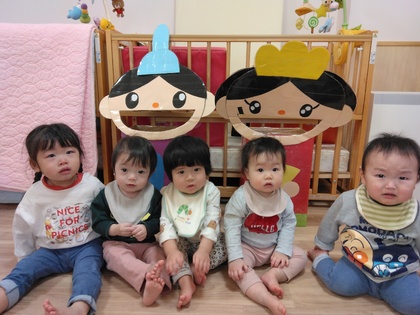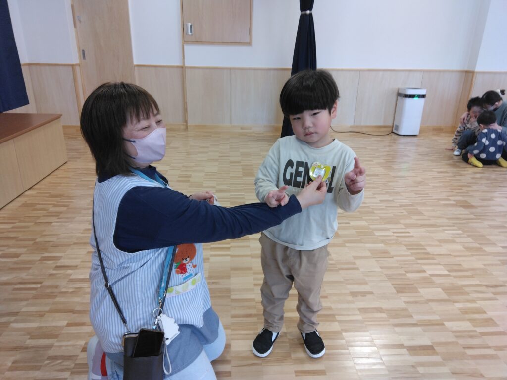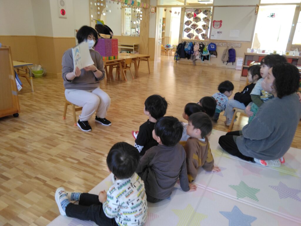♬おてぶしてぶしてぶしの中に…♪みんなでわらべ歌を楽しんでいます