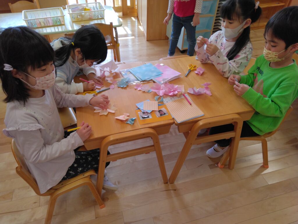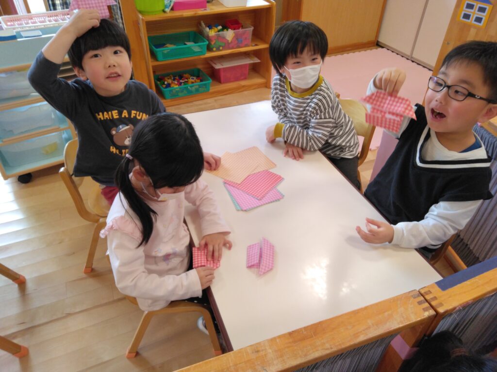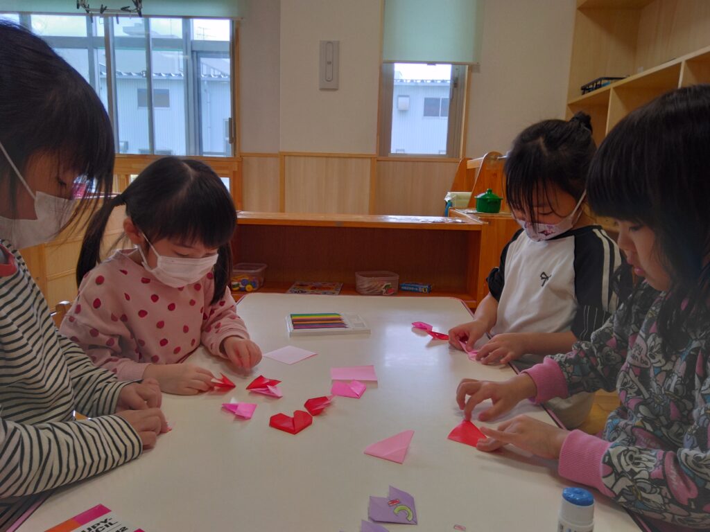 お別れパーティーに向けて折り紙でハートを折ったよ♡